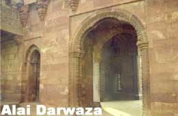Alai Darwaza is the southern gateway to the extended Quwwatul Islam mosque and is described as one of the most treasured gems of Islamic architecture. It was built by Alauddin Khalji in 1311AD. It is the first building, which used true Islamic architectural principles of accurate construction and geometric ornamentation. The darwaza is a square, domed building with intricate carvings in red sandstone and marble. It is also the first building to have a horse shoe shaped arch and a dome.